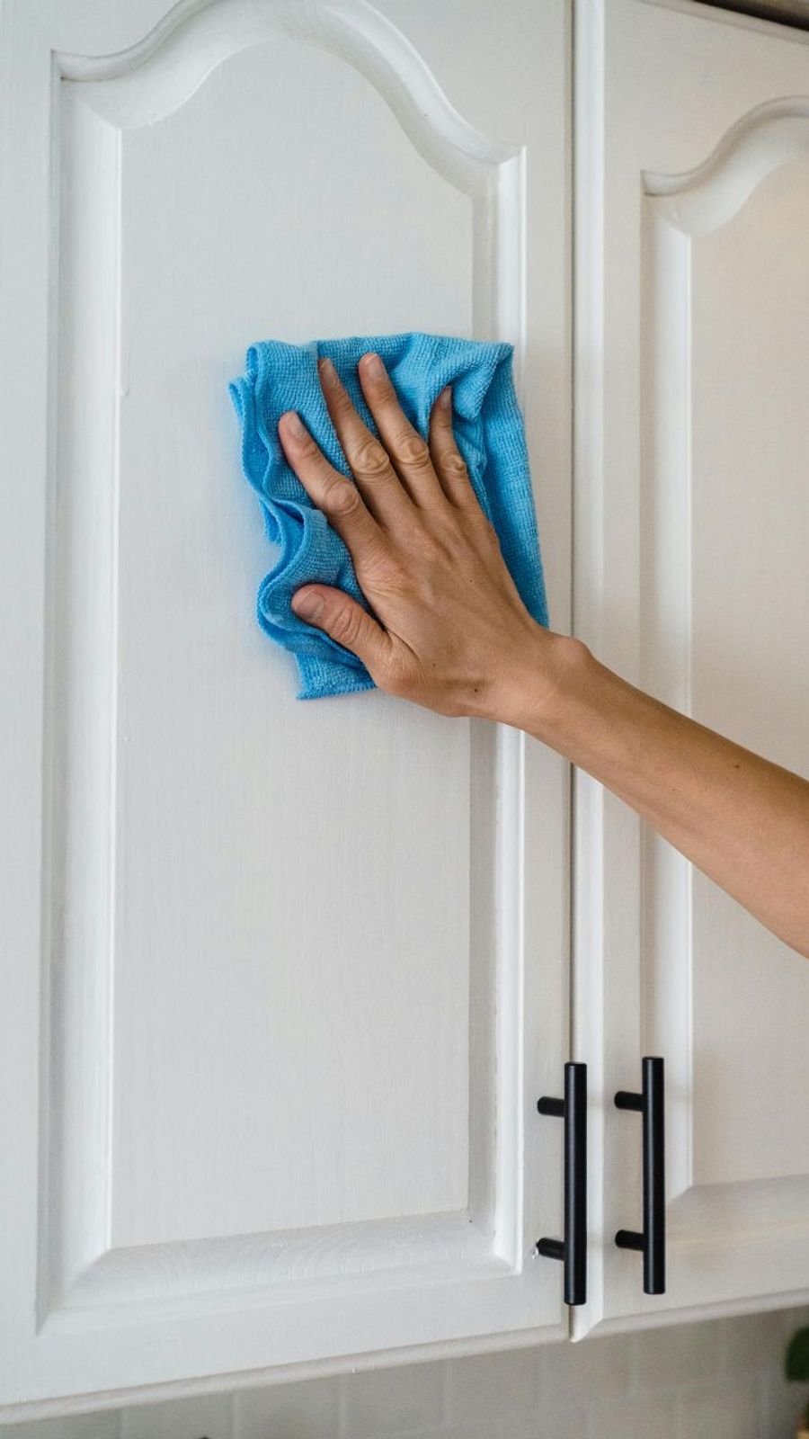 व्हाइट कैबिनेट्स पर गंदगी और चिकनाई जल्दी जम जाती है। ऐसे में हफ्ते में दो बार किसी साफ और सूखे कपड़े से इन्हें हल्के हाथों से पोंछ लें। इससे तेल, धूल और दागों का जमाव नहीं होगा।