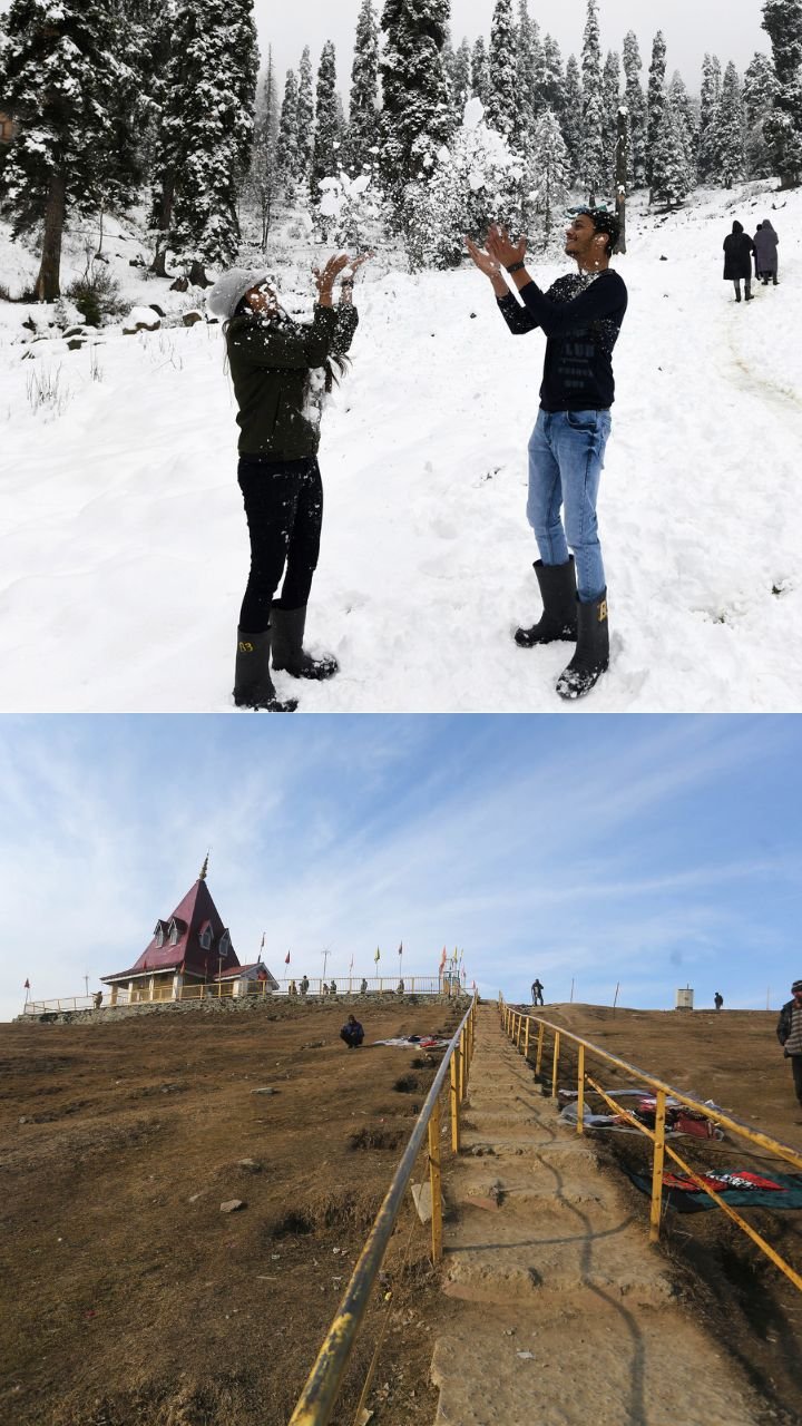 पिछले साल की गुलमर्ग की तस्वीरों में ये क्षेत्र बर्फ की मोटी चादर से ढका हुआ दिखाई दे रहा है, लेकिन साल 2024 में जमीन पर बर्फ के केवल टुकड़े ही नजर आ रहे हैं।