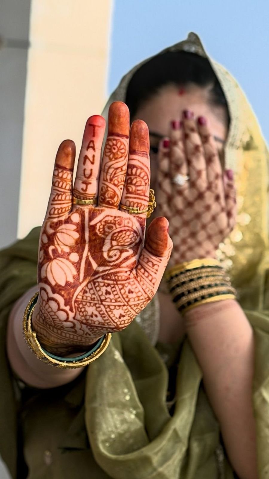 अगर हाथों पर पति के नाम का पहला अक्षर लिखवाना चाहती हैं तो ये डिजाइन ट्राई कर सकती हैं।