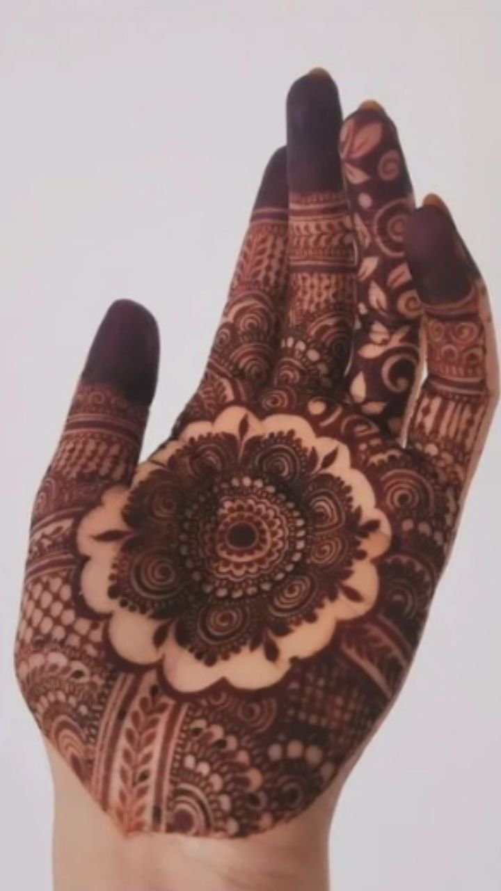इस मेहंदी डिजाइन को भी आप अपने हाथों पर सजा सकती हैं। इसको दोनों कलरों में लगाया जा सकता है।