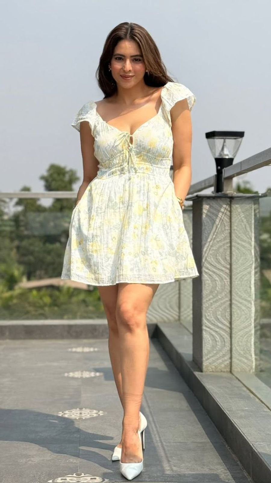समुद्र किनारे अगर वेकेशन का प्लान है तो इस फ्लोरल प्रिंट मिनी ड्रेस में कम स्टनिंग नहीं लगेंगी।