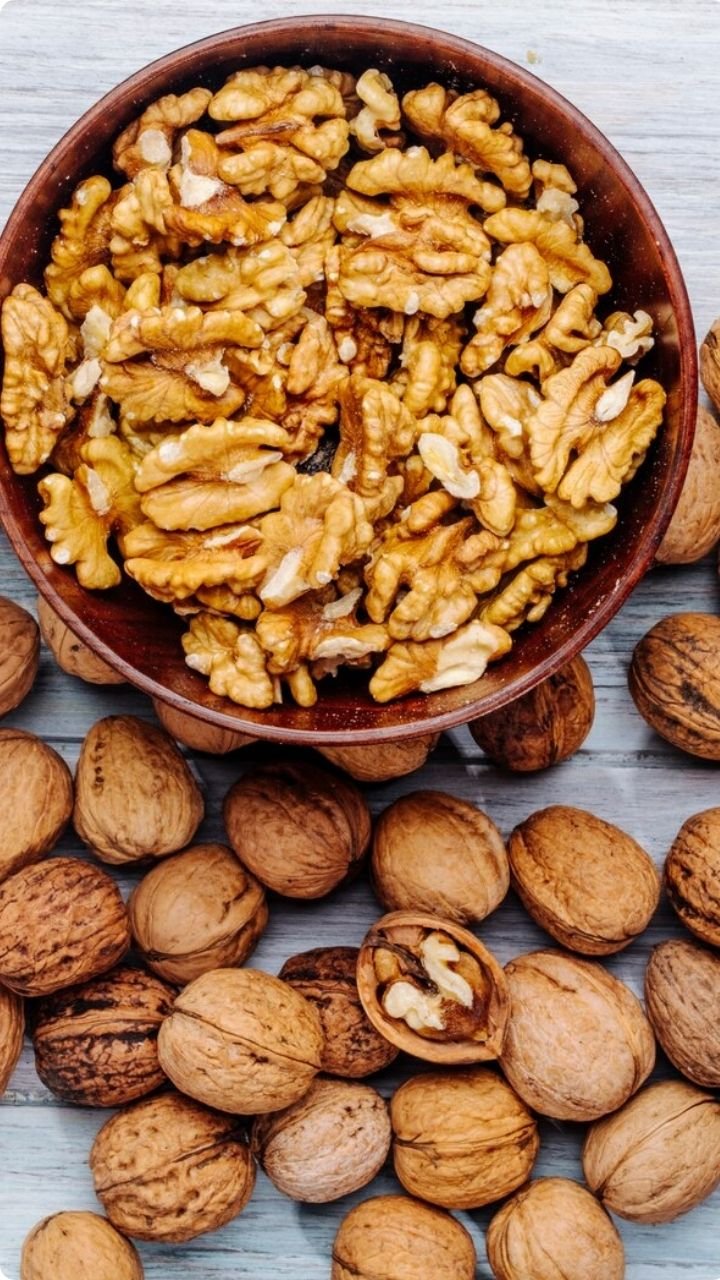 अखरोट में प्रोटीन, फाइबर, विटामिन E, विटामिन B6 और मिनरल्स होते हैं। ये सभी पोषक तत्व बॉडी की हेल्थ के लिए जरूरी हैं।