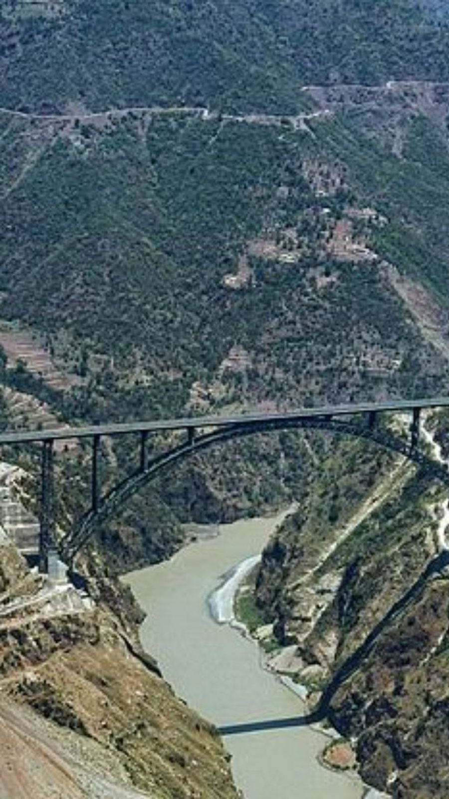 वास्तुकला का अद्भुत नमूना चिनाब रेलवे पुल नदी तल से 359 मीटर की ऊंचाई पर स्थित है।