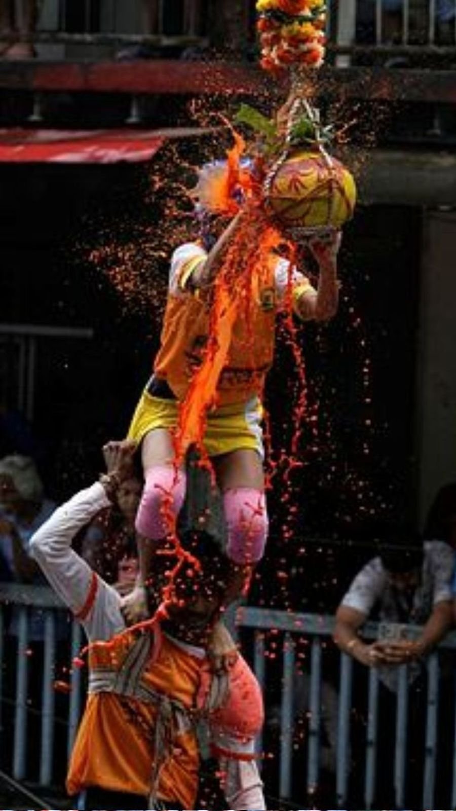 सड़कों पर मानव पिरामिड बनाते गोविंदा टोली ने मन मोह लिया।