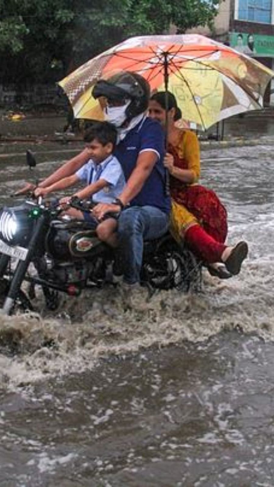 दिल्ली, गुरुग्राम, फरीदाबाद और आसपास के इलाकों में सड़कें जलमग्न हो गईं और वाहनों को रेंगते हुए देखा गया। मौसम विभाग ने दिल्ली के लिए ‘रेड अलर्ट’ जारी किया है। (Source- PTI)