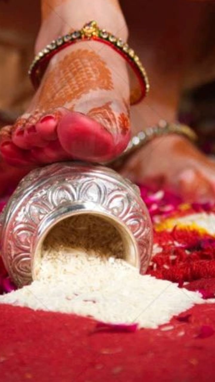 जब दुल्हन के पैर मारने से चावल घर में बिखरते हैं तो इसे सुख-समृद्धि से जोड़कर देखा जाता है।