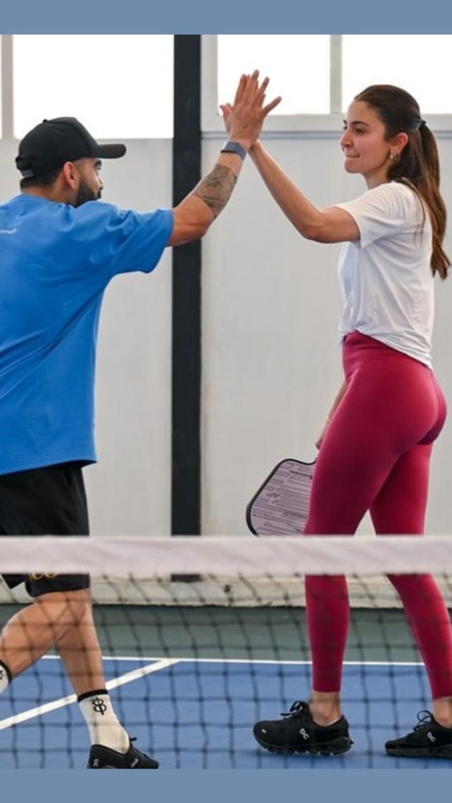 मीडिया रिपोर्ट्स की मानें तो विराट कोहली-अनुष्का शर्मा ने दिनेश कार्तिक और दीपिका पल्लीकल के साथ पिकलबॉल मुकाबला खेला।