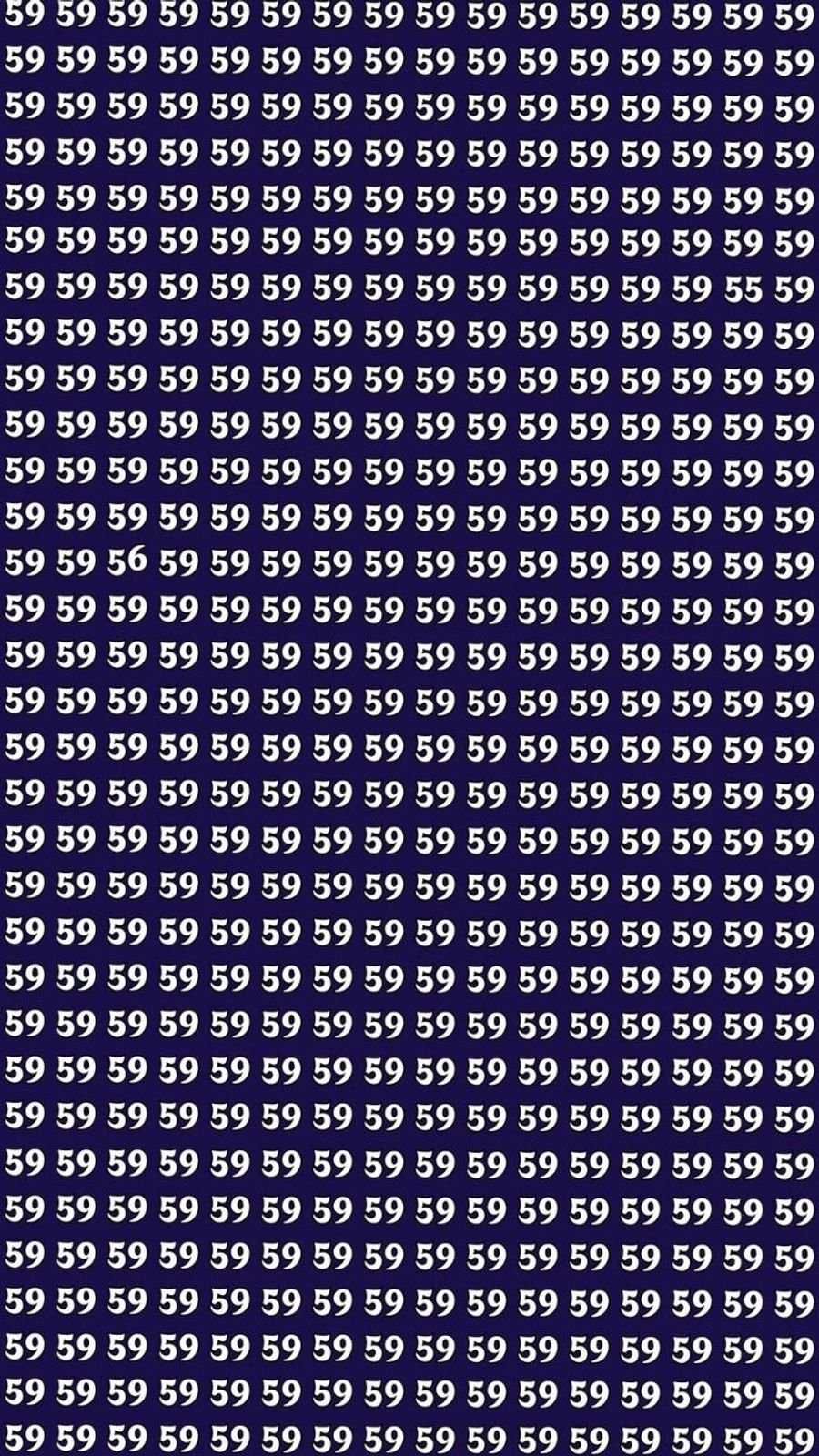इस ब्रेन-टीजर में आपको 59 से भरे ग्रिड के बीच छिपे हुए नंबर 55 और 56 को सिर्फ 9 सेकंड में ढूंढना है।