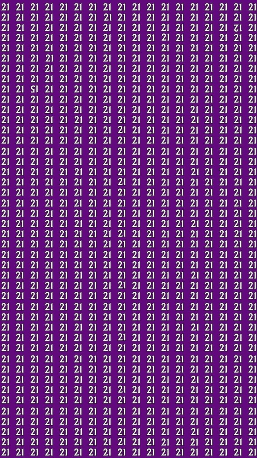इस पजल में आपको ढेर सारे 21 के बीच छिपे हुए उल्टे 12 और 15 को ढूंढना है। लेकिन ट्विस्ट ये है कि आपके पास सिर्फ 9 सेकंड का वक्त होगा।