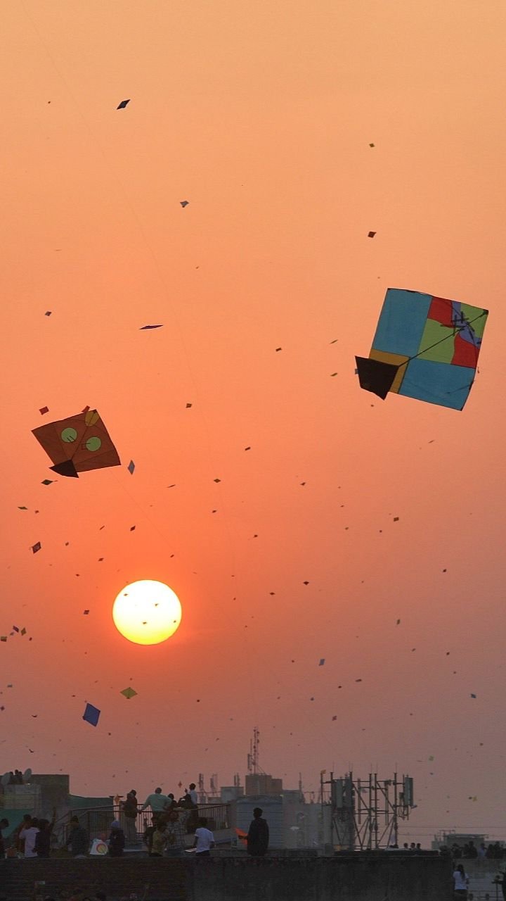 भारत में मकर संक्रांति के मौके पर पतंग उड़ाने की परंपरा है।