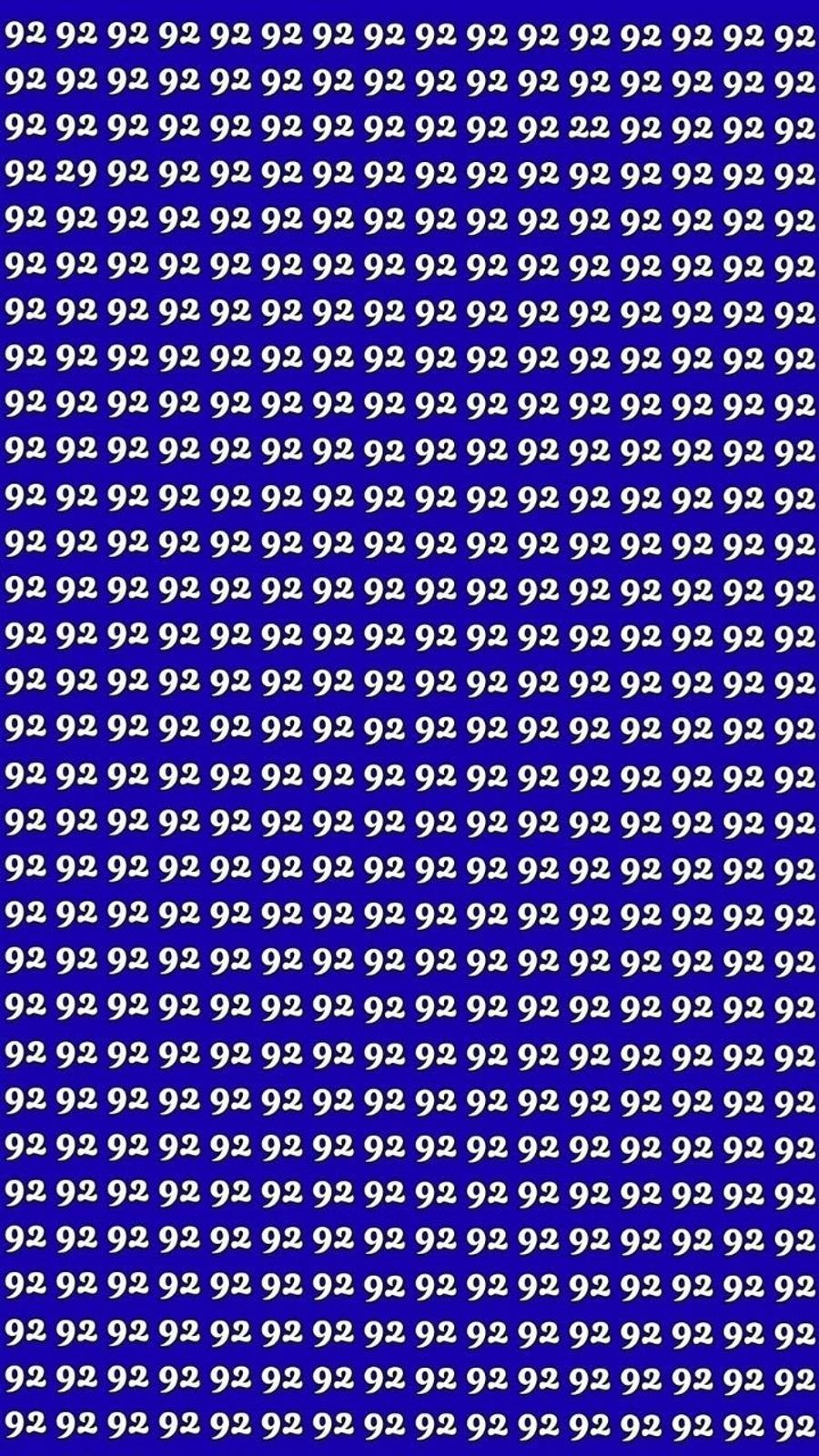 इस पहेली में आपको हर जगह 92-92-92 दिखाई देगा। मगर इसी भीड़ में कहीं 22 और कहीं 29 छिपा हुआ है। चुनौती यह है कि आपको इन दोनों नंबरों को सिर्फ 5 सेकेंड में ढूंढना है।