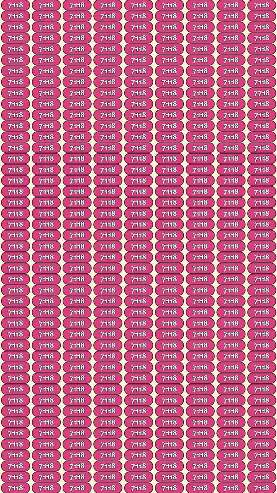 इस पजल में आपको कई बार लिखा हुआ "7118" दिखाई देगा। पर उनमें से एक संख्या "7718" छिपी हुई है। पहली नजर में सब कुछ एक जैसा लगेगा, लेकिन बारीकी से देखने पर आपको फर्क नजर आएगा।