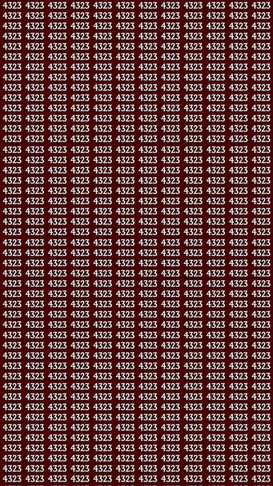 इस पजल में आपको एक ग्रिड दिया जाएगा जिसमें हर जगह “4323” नंबर लिखा हुआ है। लेकिन इन सभी के बीच एक “4233” नंबर भी छिपा हुआ है। आपको उसे सिर्फ 9 सेकेंड में ढूंढना है!
