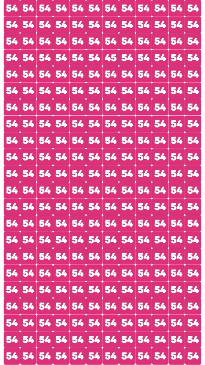 इस ब्रेन टेस्ट में एक ग्रिड भरा हुआ है 54 नंबर से। इन्हीं के बीच कहीं एक 45 छिपा हुआ है। चुनौती यह है कि आपका दिमाग बार-बार एक ही पैटर्न (54) देखने का आदी हो जाता है, जिससे वह छोटे बदलाव को नजरअंदाज कर देता है। यही वजह है कि यह इल्यूजन इतना ट्रिकी बन जाता है।