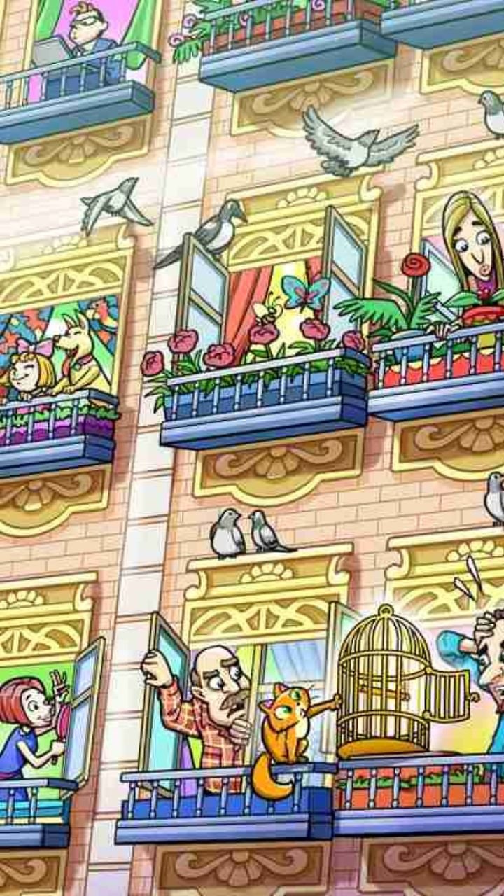 इस तस्वीर में कई सारी बालकनी दिखाई दे रही है, जिस पर कई लोग खड़े हैं। बालकनी के आस-पास बहुत सारे कबूतर भी मंडरा रहे हैं।