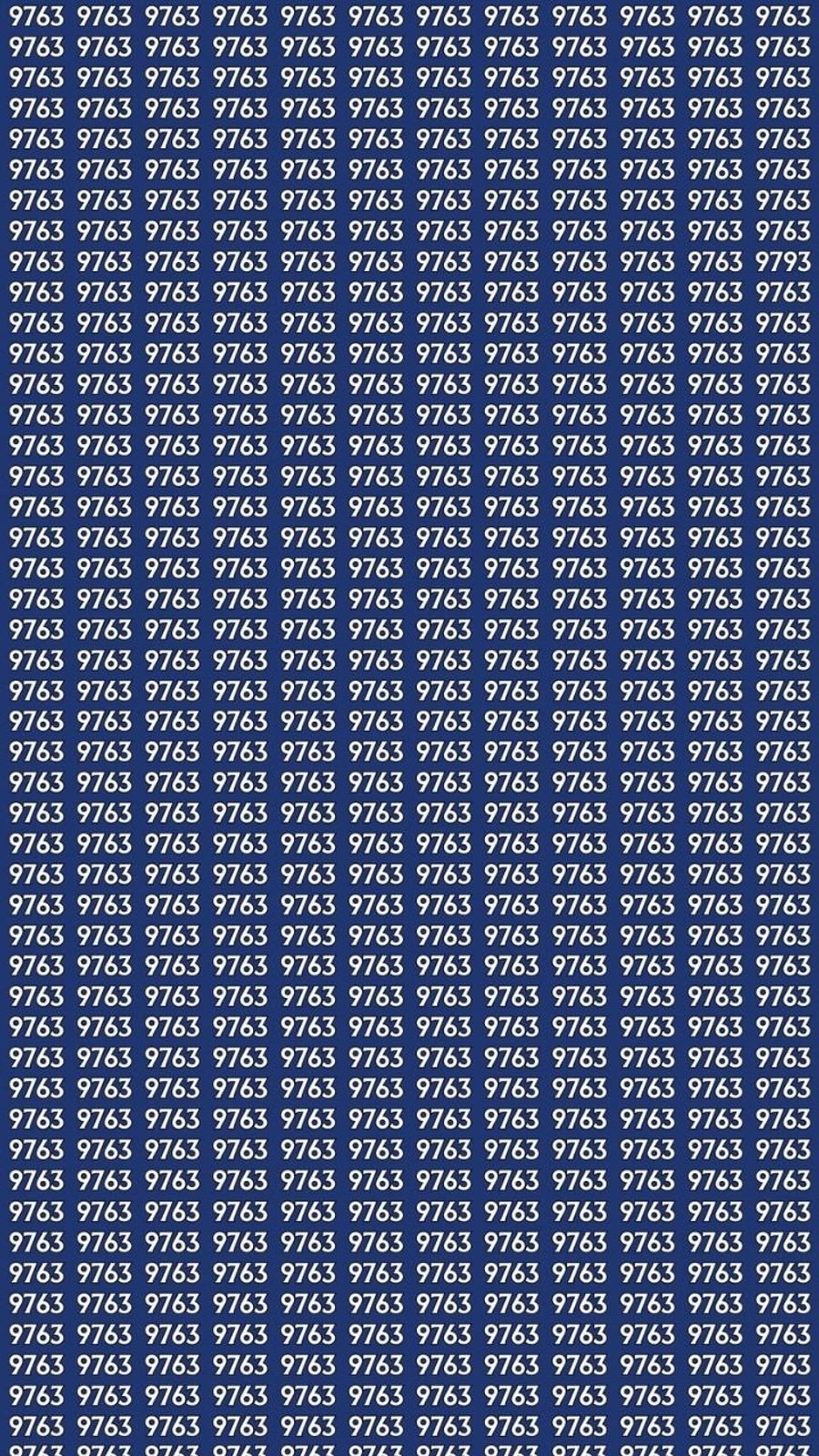 ऑप्टिकल इल्यूजन हमारी आंखों और दिमाग के पैटर्न और डिटेल्स प्रोसेस करने के तरीके का फायदा उठाते हैं। इस चैलेंज में, 9763 को बार-बार इस तरह दोहराया गया है कि बीच में छुपा 9793 लगभग उसमें घुल-मिल जाता है।