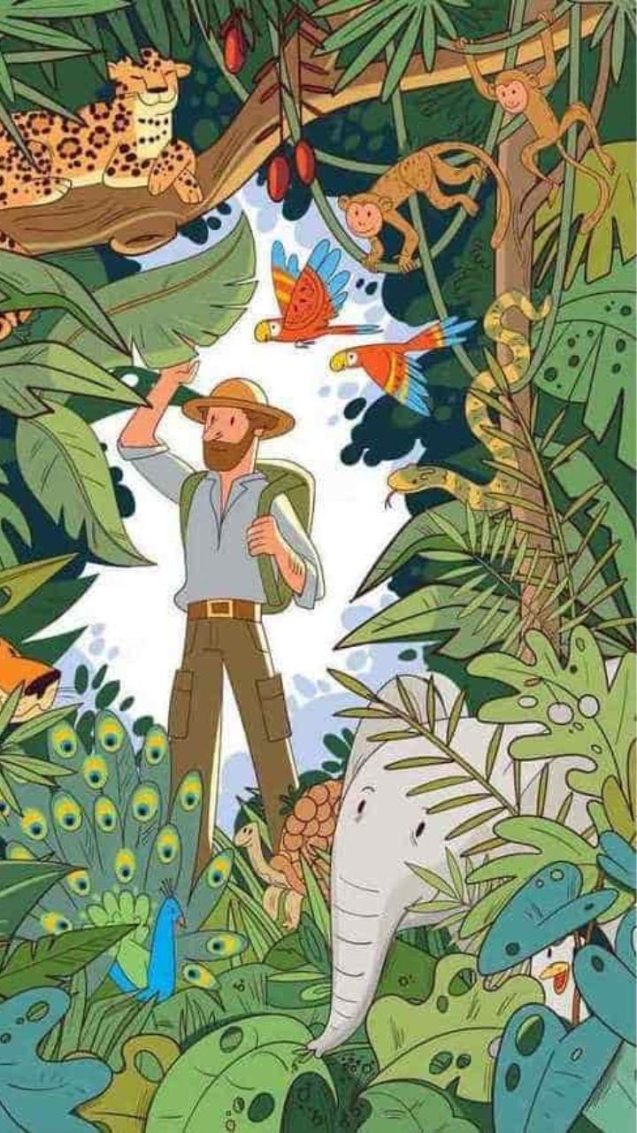 इस तस्वीर में एक जंगल का एक नजारा दिख रहा है, जहां कई तरह के जानवर नजर आ रहे हैं। मगर इस तस्वीर में आपको पेंगुइन को ढूंढना है।
