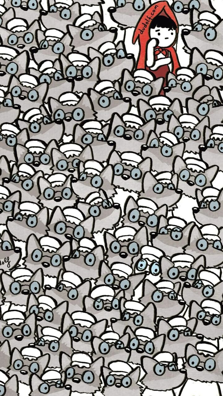 इस तस्वीर में लिटिल रेड राइडिंग हूड की दादी को ढूंढने का चैलेंज दिया गया है, जो भेड़ियों के झुंड के बीच कहीं गुम हो गई हैं।