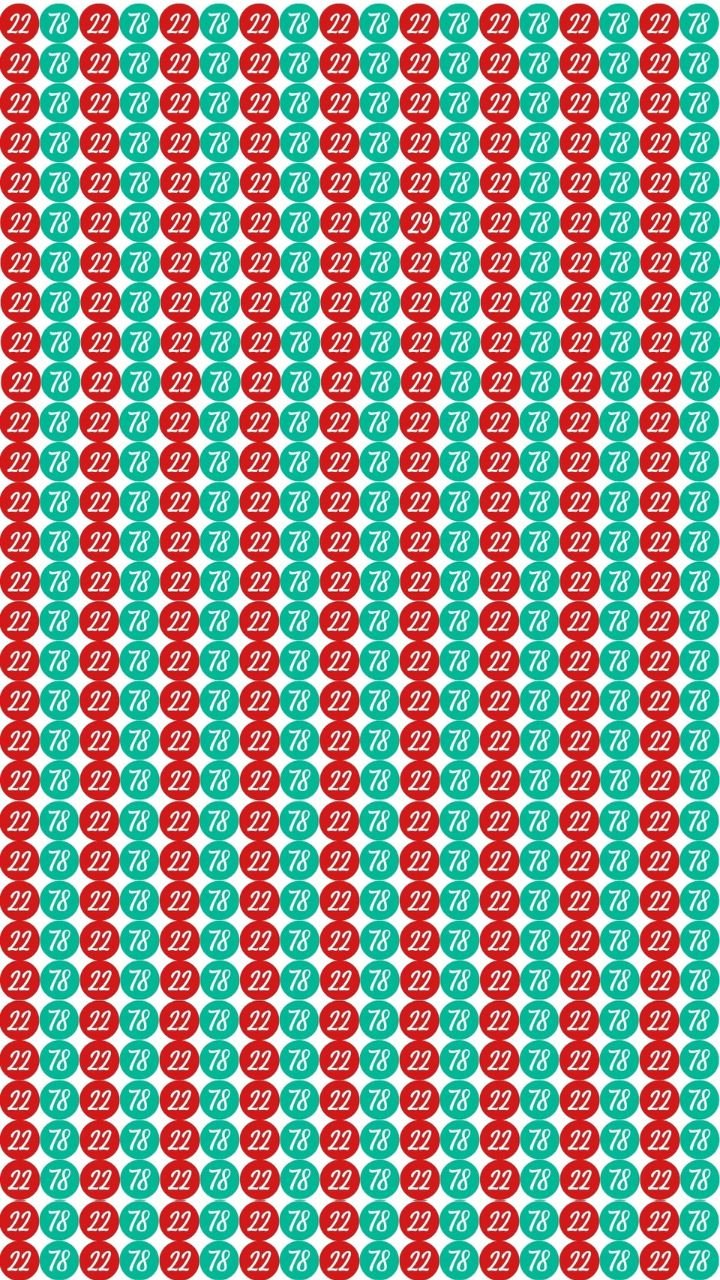 इस इमेज में हर तरफ 78 और 22 बार-बार दिखाई देते हैं। पूरा ग्रिड एक जैसे नंबरों से भरा होने के कारण दिमाग इसे एक समान पैटर्न मान लेता है। ऐसे में हमारा ब्रेन अपने आप मान लेता है कि यहां कुछ अलग हो ही नहीं सकता।