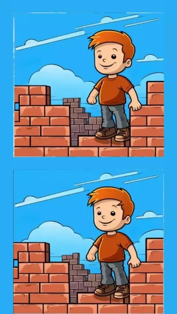 तस्वीर में एक लड़का ईंटों की बनी दीवार पर खड़ा दिखाई दे रहा है।
