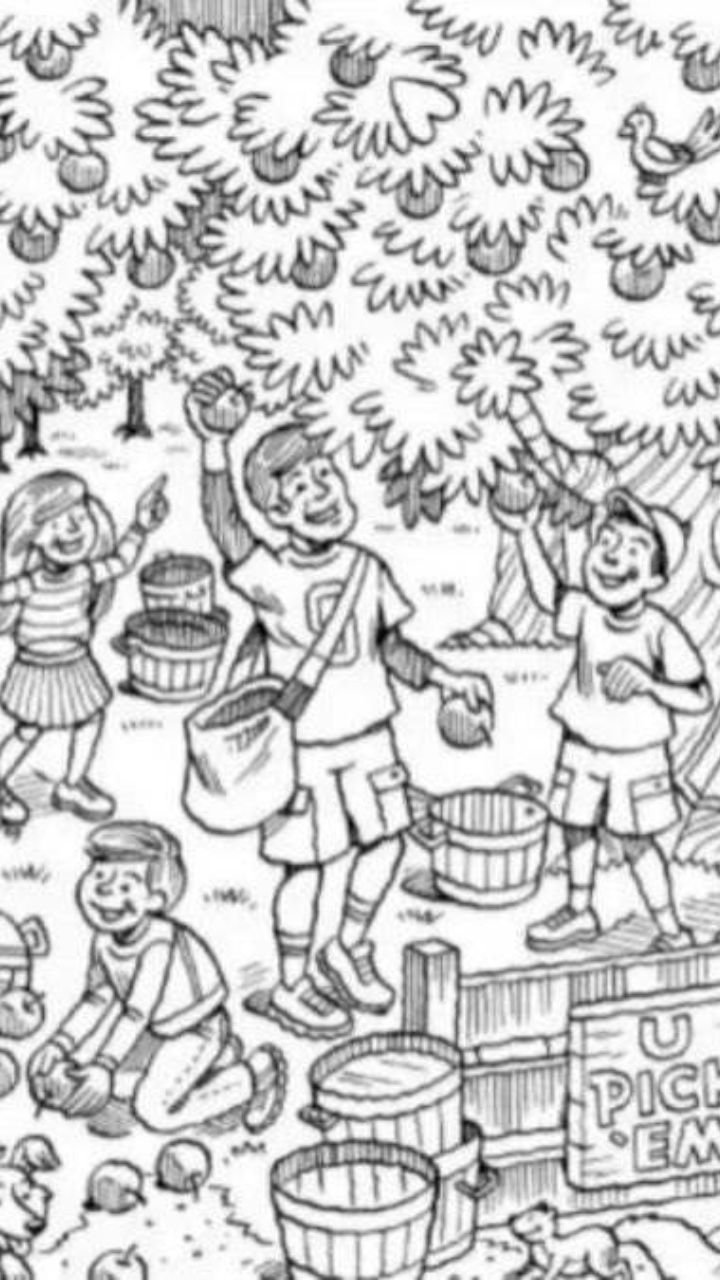 इन्हीं में से एक ऑप्टिकल इल्यूजन तस्वीर वायरल हो रही है जिसमें कुछ बच्चे पेड़ से सेब तोड़ते नजर आ रहे हैं।