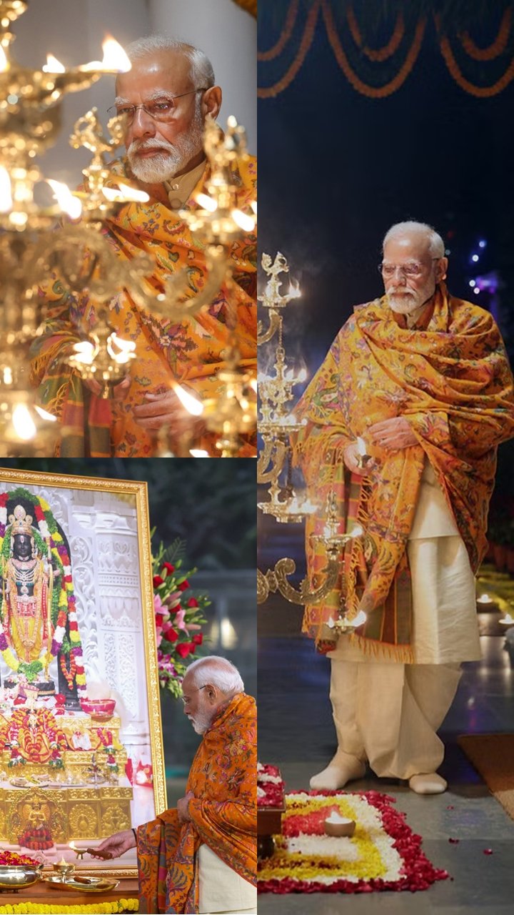 पीएम मोदी की कई तस्वीरें हैं जिनमें वह भगवान राम की संध्या आरती करते भी दिखे।