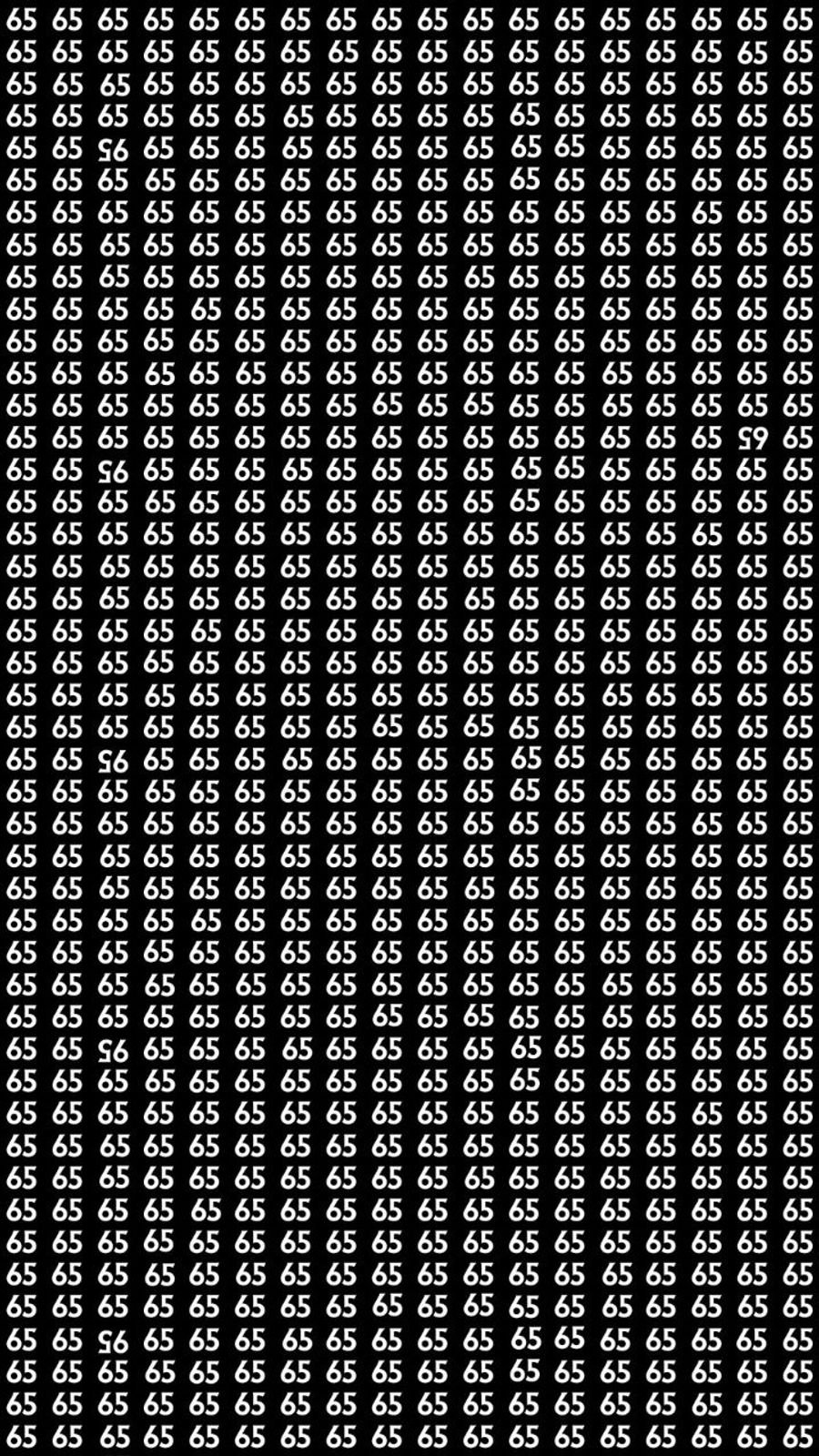 इस इमेज में आपको ढेर सारे 65 दिखाई देंगे। लेकिन इनके बीच चालाकी से छिपाए गए हैं उल्टे 65 और 95।