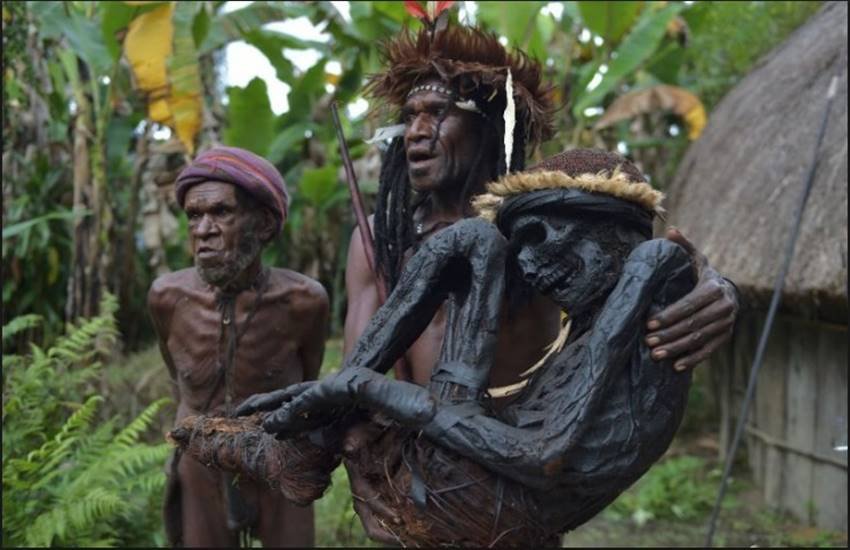 इंडोनेशिया के पपुआ में रहने वाला एक आदिवासी समूह ऐसा है जो परिवार के मृतकों को ममी बनाकर रखता है। इस गांव में रहने वाले लोगों की कुछ तस्वीरें सामने आई है। रिपोर्ट्स के मुताबिक यह लोग अपने पूर्वजों के शवों को जलाते या दफनाते नहीं है, बल्कि शव को धुएं से ममी बनाकर सैकड़ों साल तक सुरक्षित रख लेते हैं।