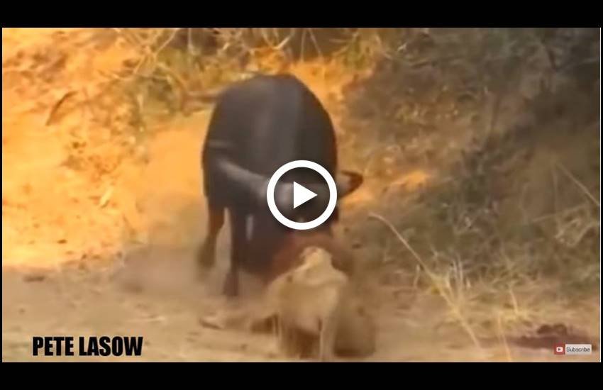 इसके बाद जो दृश्य आता है उसमें एक शेर को भैंस का शिकार करना भारी पड़ता दिखा। शेर शुरुआत में भैंस को गर्दन से पकड़कर काबू करने की कोशिश करता है, मगर थोड़ी देर बाद ही यह भैंस उसपर हावी हो जाती है। भैंस इस शेर को इतना मारती है कि वह बेहोशी की हालत में पहुंच जाता है। इसी तरह इस वीडियो में कई और जानवरों की लड़ाई को दिखाया गया है। नीचे देखें वीडियो-